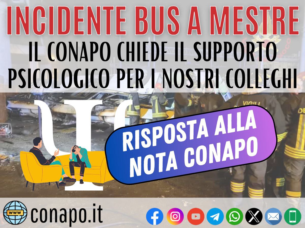 Home Bacheca Sindacale Incidente bus a Mestre: la risposta dell’Amministrazione alla richiesta CONAPO di supporto psicologico per i colleghi intervenuti.