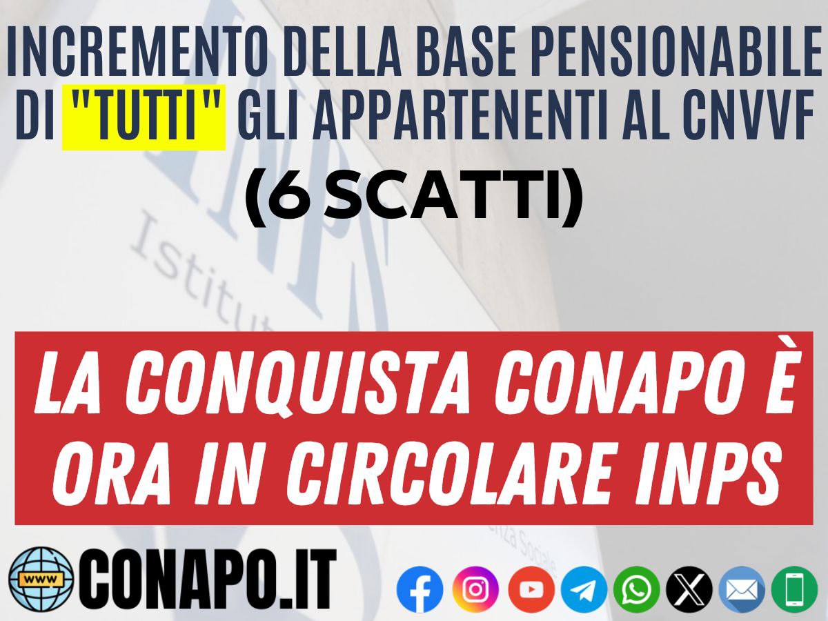 Home News Incremento della base pensionabile di “tutti” gli appartenenti al CNVVF (6 scatti). La conquista CONAPO è ora in circolare INPS.