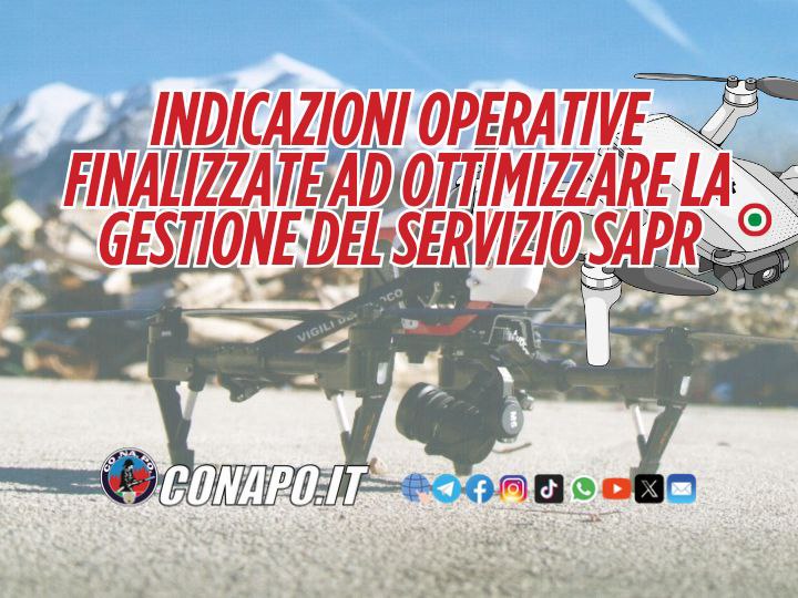 Indicazioni operative finalizzate ad ottimizzare la gestione del servizio SAPR. da Redazione_Conapo 14 Novembre 2025 14 Novembre 2025 253 Indicazioni operative finalizzate ad ottimizzare la gestione del servizio SAPR Leggi la nota Scarica il PDF Stampa Condividi 0 FacebookTwitterPinterestWhatsappTelegramEmail Potrebbe piacerti anche Screening oncologico e cardiovascolare per il personale in servizio e in quiescenza. 4 Dicembre 2025 Il Governo incontra Forze Armate, Comparto Sicurezza e Soccorso Pubblico. 4 Dicembre 2025 Buona Santa Barbara. 4 Dicembre 2025 Avvio 103° corso Allievi Vigili del Fuoco 3 Dicembre 2025 Procedura di selezione per 18 posti di specialista di aeromobile vigile del fuoco per... 3 Dicembre 2025 Avviso relativo alla “prova pratica tecnica” per l’accertamento dei requisiti attitudinali della selezione interna... 2 Dicembre 2025 post precedente XVII° e XVIII° corso di formazione per vice direttori del ruolo dei direttivi che espletano funzioni operative. Avvio procedura scelta della sede di servizio. prossimo post Legge di bilancio 2026, Conapo incontra Piantedosi che assicura impegno.