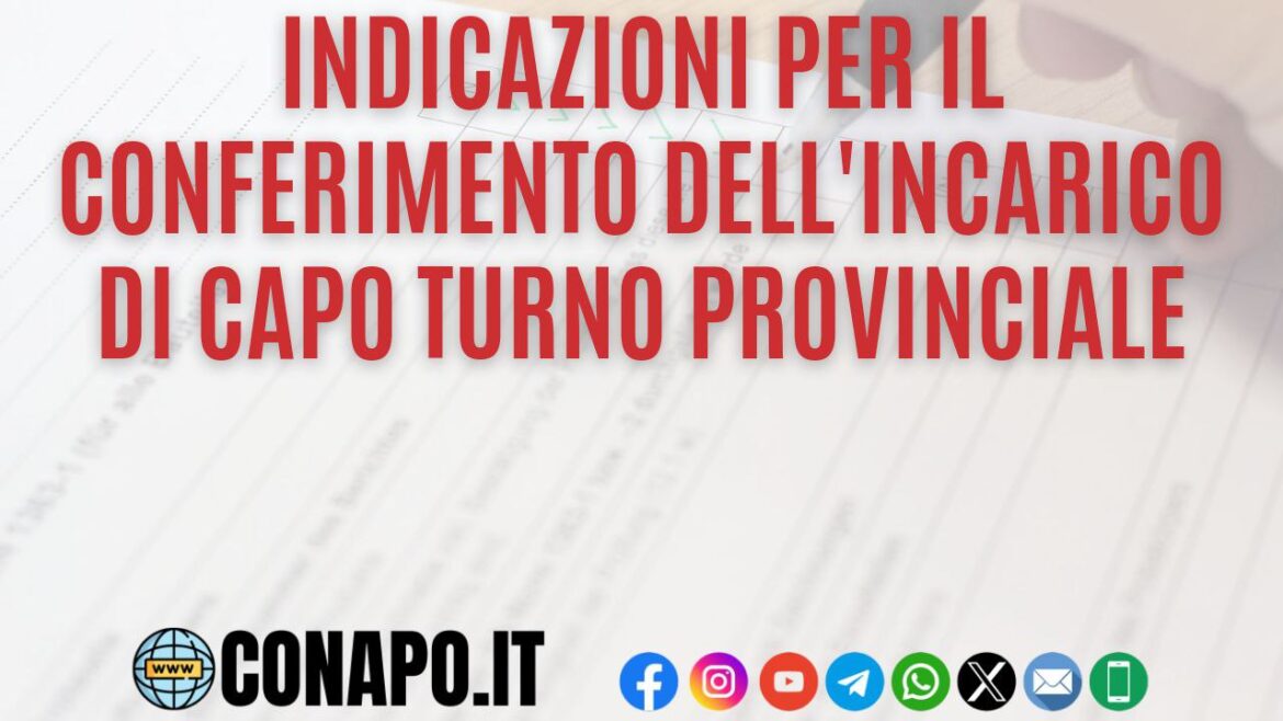 Home News Indicazioni per il conferimento dell’incarico di Capo Turno provinciale – Informativa.