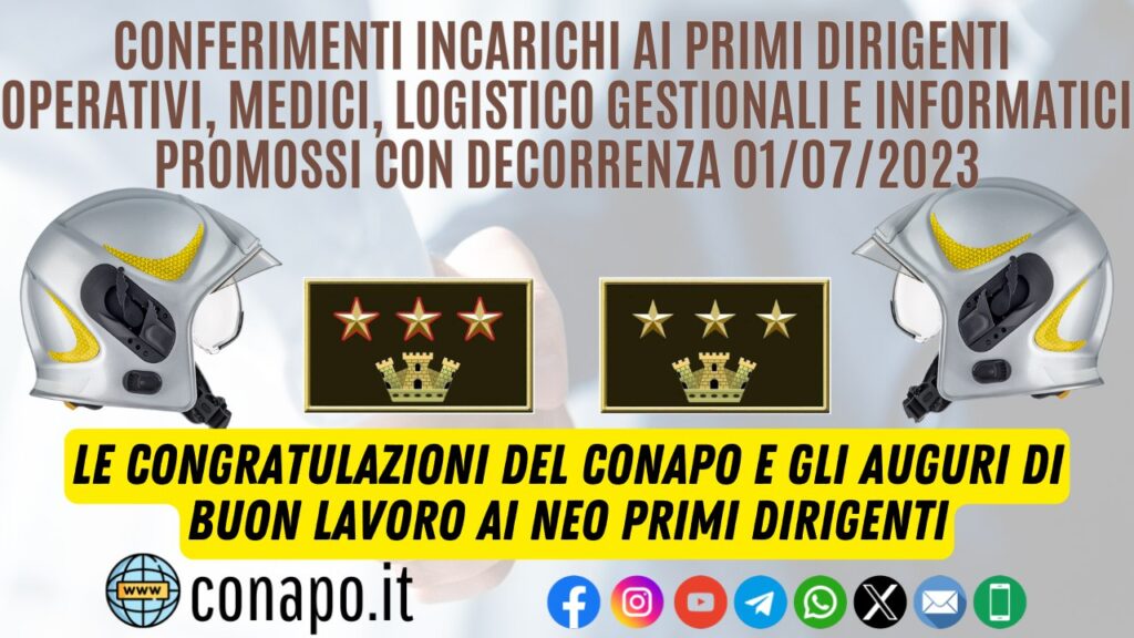 Informativa relativa al conferimento di incarichi dirigenziali. da Redazione_Conapo 9 Settembre 2024 9 Settembre 2024 2,4K Informativa relativa al conferimento di incarichi dirigenziali Leggi la nota Scarica il PDF Stampa Condividi 1 FacebookTwitterPinterestWhatsappTelegramEmail Potrebbe piacerti anche Elezione dei rappresentanti dei lavoratori per la sicurezza. 16 Dicembre 2025 Consiglio dei Ministri n. 151 – 11 Dicembre 2025 – Proroga termini – Disposizioni... 12 Dicembre 2025 Specialisti di aeromobile – Decreto di inquadramento ed assegnazione sede. 10 Dicembre 2025 Incontro governo-sindacati sulla legge di Bilancio, l’intervento del Segretario Generale Marco Piergallini. 9 Dicembre 2025 Procedura di assunzione di n. 97 unità nella qualifica di operatore nel ruolo degli... 9 Dicembre 2025 Nomina in ruolo dei Vigili del Fuoco appartenenti al 100° corso di formazione teorico-pratico... 9 Dicembre 2025 post precedente Nautici VVF, CONAPO chiede attenzione e aumento organici e nuclei. prossimo post Concorso pubblico a 350 posti di vigile del fuoco del CNVVF. Decreto esclusione limite età n. 316 del 9 settembre 2024.