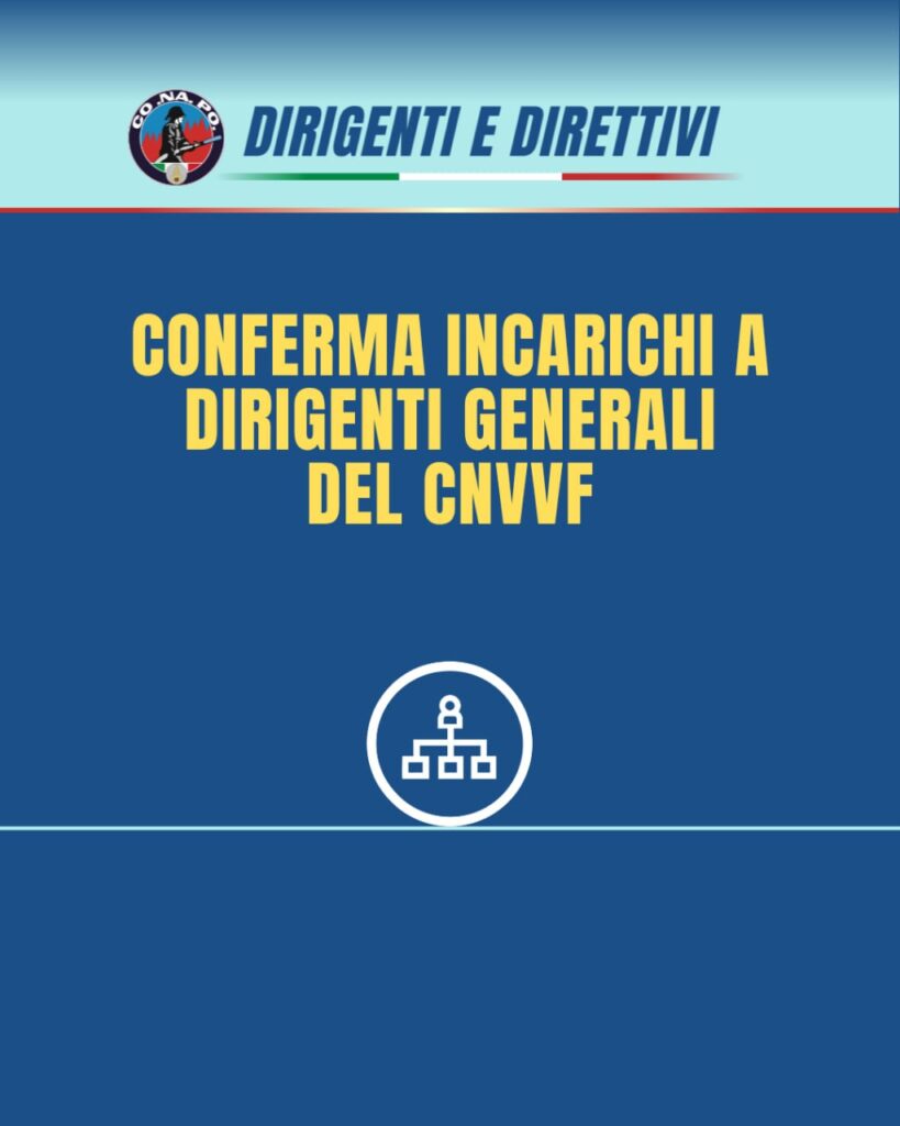 Informativa relativa alla conferma di incarichi dirigenziali a Dirigenti Generali del Corpo Nazionale dei Vigili del Fuoco. da Redazione_Conapo 14 Aprile 2026 14 Aprile 2026 118 Conferma di incarichi a Dirigenti Generali del CNVVF Leggi la nota Scarica il PDF Stampa Condividi 0 FacebookTwitterPinterestWhatsappTelegramEmail Potrebbe piacerti anche Riduzione a 5 settimane corso CS nautici e sommozzatori, il Dipartimento ha risposto al... 14 Aprile 2026 Riunione su mobilità personale ruolo Ispettori informatici e rivisitazione pianta organica. 14 Aprile 2026 Riunione su ridefinizione degli incarichi di funzione ai dirigenti del CNVVF. 14 Aprile 2026 Ricognizione delle aspirazioni al trasferimento del personale appartenente al ruolo dei Direttivi Sanitari. 14 Aprile 2026 Concorso pubblico a 52 posti di ispettore logistico gestionale – Avviso visite mediche. 14 Aprile 2026 Concorso pubblico a 33 posti di vice direttore sanitario – Avviso visite mediche. 14 Aprile 2026 post precedente Riduzione a 5 settimane corso CS nautici e sommozzatori, il Dipartimento ha risposto al Conapo. prossimo post NUORO – Verbale sindacale del 13 aprile 2026 su ricognizione mobilita interna dei Vigili del fuoco.