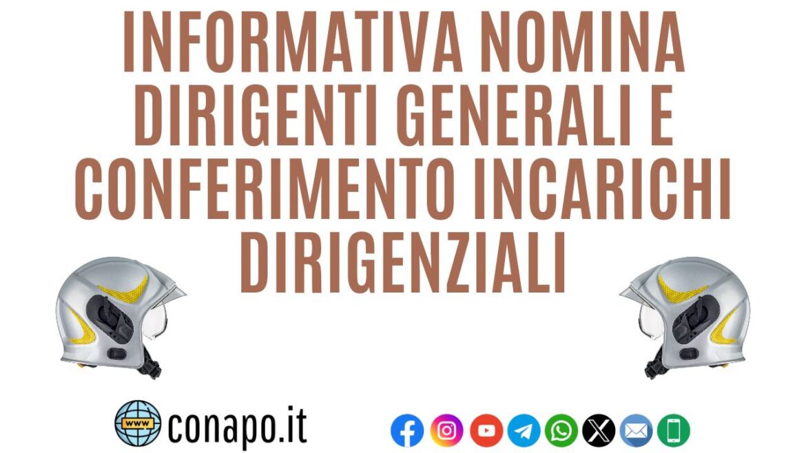 Informativa relativa alle nomine di Dirigenti Generali e al conferimento di incarichi dirigenziali generali del Corpo Nazionale dei Vigili del Fuoco.