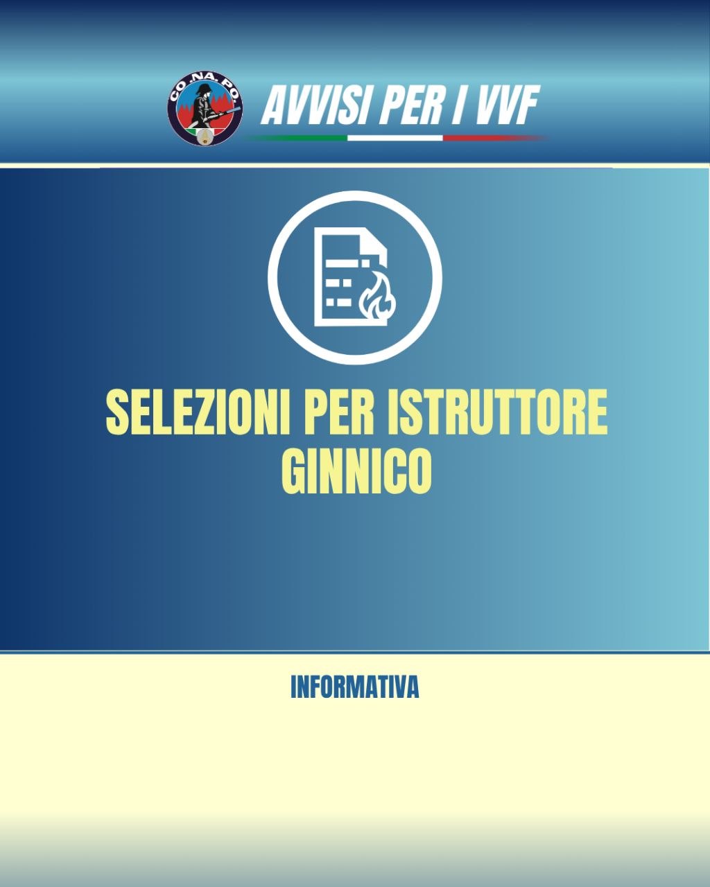 Informativa su corso per Istruttore Professionale e selezione per Istruttore Ginnico e relativo corso di formazione. da Redazione_Conapo 25 Aprile 2026 25 Aprile 2026 65 Leggi la nota Scarica il PDF Stampa Condividi 0 FacebookTwitterPinterestWhatsappTelegramEmail Potrebbe piacerti anche Telefonia mobile cellulare VV.F. Convenzione CONSIP TM9. Operatore telefonia mobile VODAFONE – Differimento data... 25 Aprile 2026 Ricognizione delle aspirazioni al trasferimento del personale appartenente ai ruoli, ad esaurimento, dei Direttivi... 24 Aprile 2026 Assegnazione temporanea, ai sensi dell’art. 42 del D.P.R. n. 64/2012, di personale appartenente al... 24 Aprile 2026 Il CONAPO sollecita le promozioni a ruolo aperto al 31/12/2025. 24 Aprile 2026 Corso di formazione per ispettori aeronaviganti. Incontro sindacale. 23 Aprile 2026 Assegnazione temporanea, ai sensi dell’art. 42 del D.P.R. n. 64/2012, di personale appartenente alla... 22 Aprile 2026 post precedente Telefonia mobile cellulare VV.F. Convenzione CONSIP TM9. Operatore telefonia mobile VODAFONE – Differimento data di interruzione servizio SIM TIM.