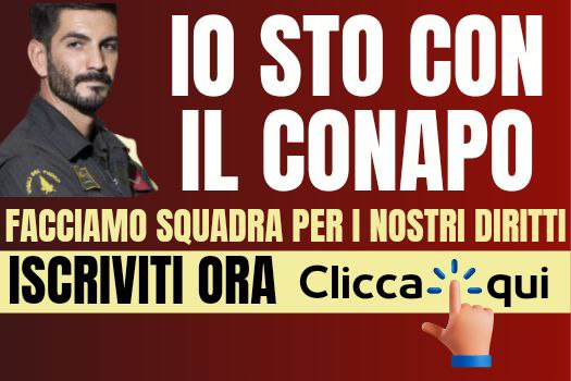 Io sto con il Conapo, facciamo squadra e diamo forza ai nostri diritti – clicca per approfondire! da Redazione_Conapo 31 Ottobre 2024 31 Ottobre 2024 903 Condividi 1 FacebookTwitterPinterestWhatsappTelegramEmail Potrebbe piacerti anche Attribuzione degli scatti convenzionali al 31 dicembre 2024 a favore del personale del Corpo... 17 Dicembre 2025 Elezione dei rappresentanti dei lavoratori per la sicurezza. 16 Dicembre 2025 Consiglio dei Ministri n. 151 – 11 Dicembre 2025 – Proroga termini – Disposizioni... 12 Dicembre 2025 Specialisti di aeromobile – Decreto di inquadramento ed assegnazione sede. 10 Dicembre 2025 Incontro governo-sindacati sulla legge di Bilancio, l’intervento del Segretario Generale Marco Piergallini. 9 Dicembre 2025 Procedura di assunzione di n. 97 unità nella qualifica di operatore nel ruolo degli... 9 Dicembre 2025 post precedente Mobilità del personale appartenente al ruolo dei Capi Squadra e dei Capi Reparto. Pubblicazione elenchi delle domande mobilità per verifica dati. prossimo post Informativa relativa all’attribuzione di incarico dirigenziale in temporanea reggenza.