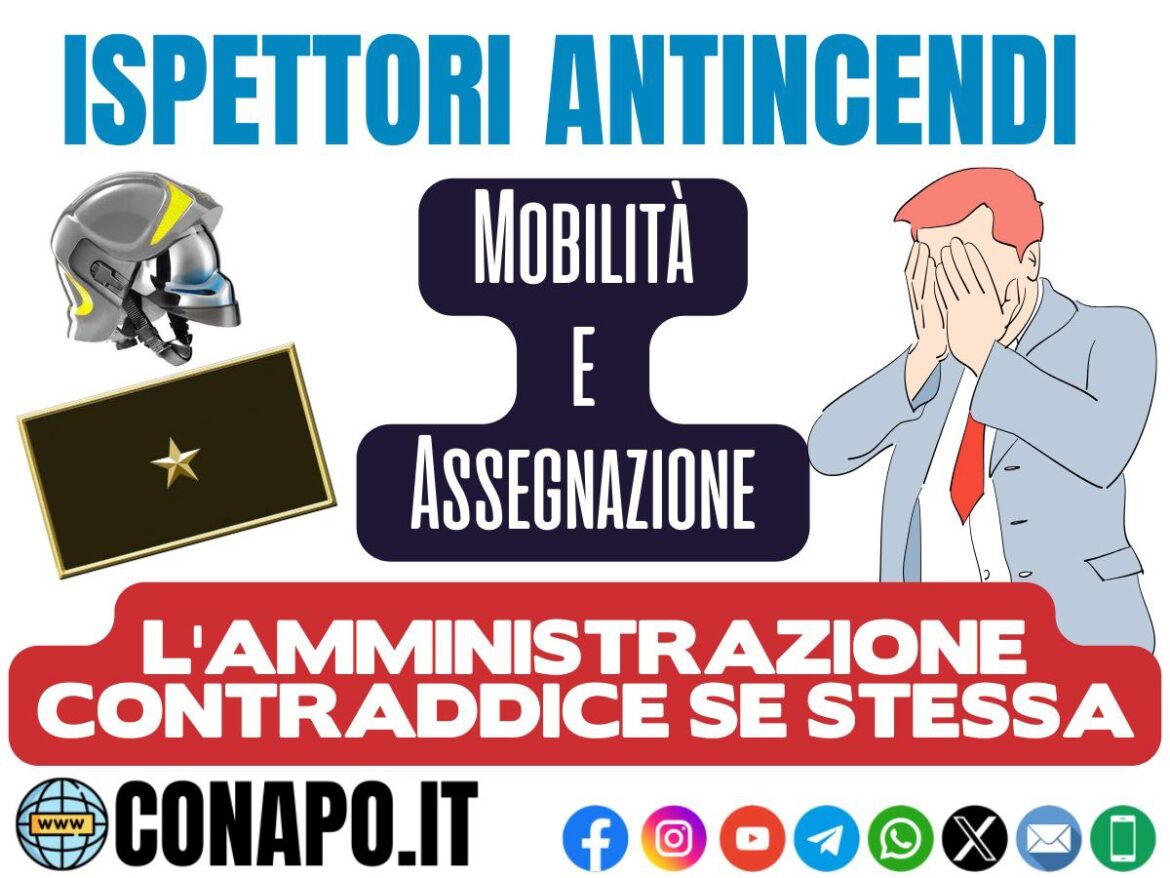 In data 11 luglio u.s. (STAFFCADIP prot. 15351/2023, all.2), nel rispondere alla nota CONAPO (prot. 89/23) sulla richiesta di modifica dei criteri per la formazione delle graduatorie nazionali di mobilità per il personale ispettore (sia Antincendi che RTP), codesta Amministrazione evidenziava che “la procedura di mobilità per il personale appartenente ai ruoli in oggetto (Ispettori Antincendi e RTP) è attualmente in corso” ed è intendimento “espletarla in tempi compatibili con la prevista conclusione del corso di formazione e la conseguente assegnazione alle sedi”.