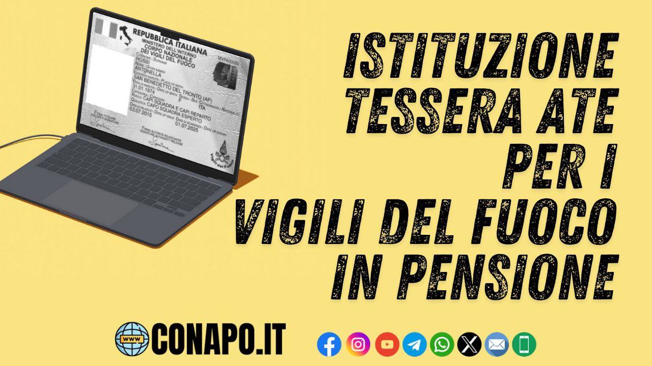 Il CONAPO chiede l’istituzione di una tessera di riconoscimento (modello ATe) per i Vigili del Fuoco in pensione, analogamente a quanto avviene per il personale pensionato della Polizia di Stato.