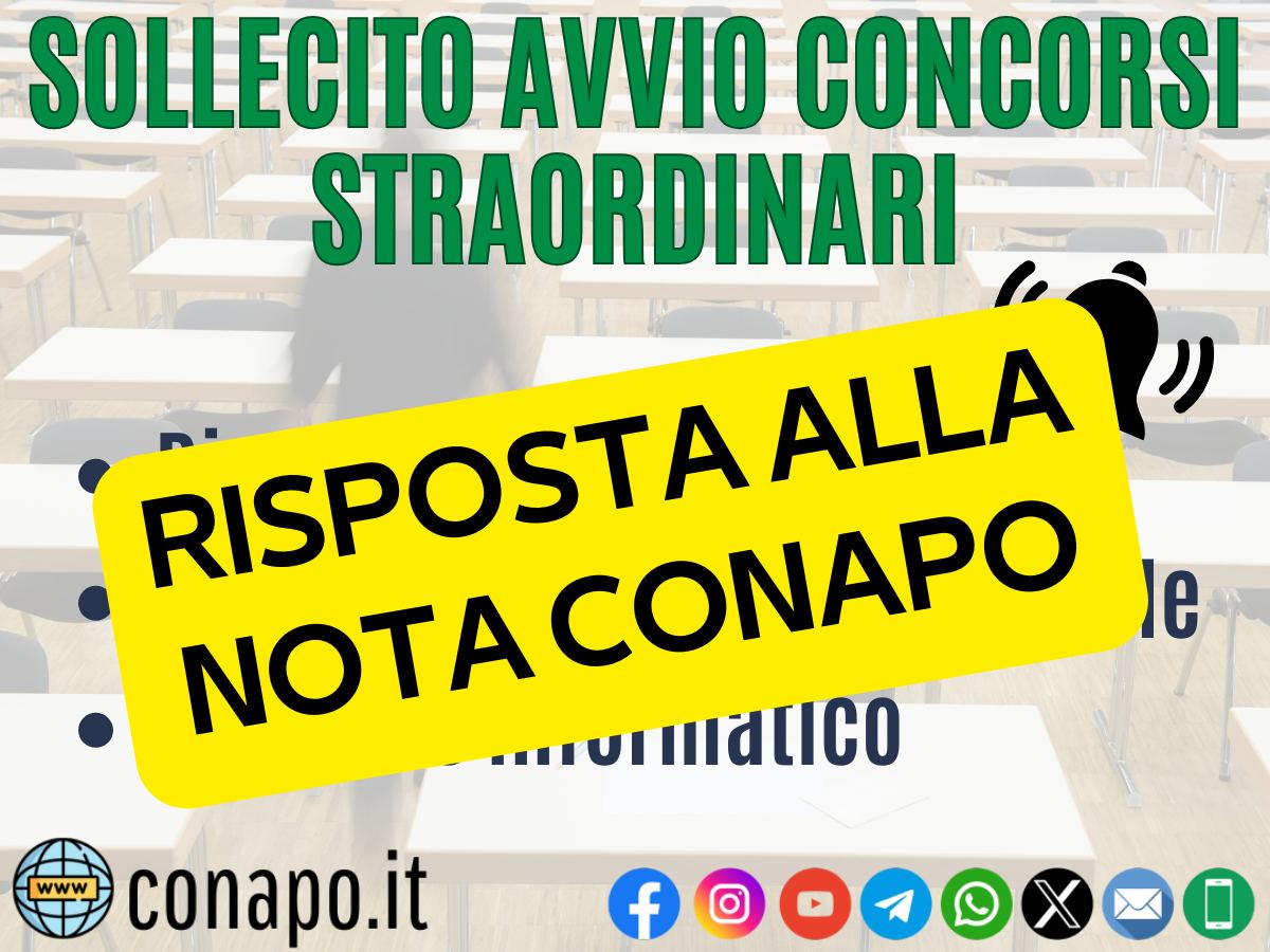 La risposta dell’Amministrazione alla nota CONAPO su concorsi straordinari a Direttore, Direttore logistico-gestionale e Direttore informatico per il personale dei ruoli ad esaurimento dei direttivi speciali.