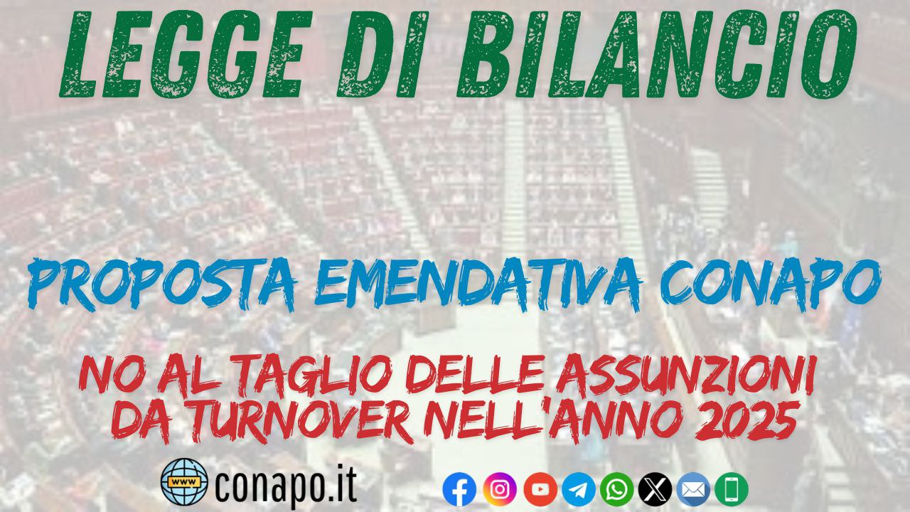 LEGGE DI BILANCIO – PROPOSTA EMENDATIVA CONAPO – NO AL TAGLIO DELLE ASSUNZIONI DA TURNOVER NELL’ANNO 2025 da Redazione_Conapo 8 Novembre 2024 8 Novembre 2024 695 Leggi la nota Scarica il PDF Stampa Condividi 0 FacebookTwitterPinterestWhatsappTelegramEmail Potrebbe piacerti anche Incontro governo-sindacati sulla legge di Bilancio, l’intervento del Segretario Generale Marco Piergallini. 9 Dicembre 2025 Buona Santa Barbara. 4 Dicembre 2025 Riordino e modifiche al D.Lgs. 217/2005 – Osservazioni e richieste CONAPO per gli Aeronaviganti,... 1 Dicembre 2025 Prova orale selezioni per Ispettori piloti di aeromobile, Ispettori specialisti di aeromobile, Ispettori elisoccorritori.... 27 Novembre 2025 Riunione sul progetto di riforma ordinamentale del CNVVF – L’intervento del CONAPO. 26 Novembre 2025 Prova orale selezioni interne per 62 posti per Ispettori piloti di aeromobile; 62 posti... 21 Novembre 2025 post precedente LEGGE DI BILANCIO – PROPOSTA EMENDATIVA CONAPO – STESSA PERCENTUALE FORZE DI POLIZIA NEL RINNOVO CONTRATTO 2022/2024 prossimo post LEGGE DI BILANCIO – PROPOSTA EMENDATIVA CONAPO – CHIUSURA CONTRATTO 2022/2024 CON IDENTICI INCREMENTI FF.PP. A PARITÀ DI QUALIFICA