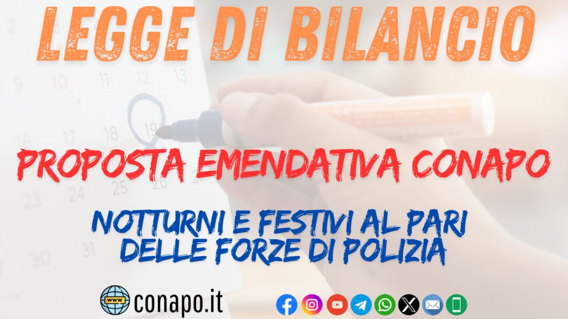 LEGGE DI BILANCIO – PROPOSTA EMENDATIVA CONAPO – NOTTURNI E FESTIVI AL PARI DELLE FORZE DI POLIZIA da Redazione_Conapo 8 Novembre 2024 8 Novembre 2024 929 Leggi la nota Scarica il PDF Stampa Condividi 1 FacebookTwitterPinterestWhatsappTelegramEmail Potrebbe piacerti anche Buona Santa Barbara. 4 Dicembre 2025 Riordino e modifiche al D.Lgs. 217/2005 – Osservazioni e richieste CONAPO per gli Aeronaviganti,... 1 Dicembre 2025 Prova orale selezioni per Ispettori piloti di aeromobile, Ispettori specialisti di aeromobile, Ispettori elisoccorritori.... 27 Novembre 2025 Riunione sul progetto di riforma ordinamentale del CNVVF – L’intervento del CONAPO. 26 Novembre 2025 Prova orale selezioni interne per 62 posti per Ispettori piloti di aeromobile; 62 posti... 21 Novembre 2025 Legge di bilancio, si va verso l’accoglimento delle richieste Conapo per i vigili del... 21 Novembre 2025 post precedente LEGGE DI BILANCIO – PROPOSTA EMENDATIVA CONAPO – CHIUSURA CONTRATTO 2022/2024 CON IDENTICI INCREMENTI FF.PP. A PARITÀ DI QUALIFICA prossimo post LEGGE DI BILANCIO – PROPOSTA EMENDATIVA CONAPO – ESTENSIONE AI VIGILI DEL FUOCO DELLE AGEVOLAZIONI PRIMA CASA RISERVATE ALLE FORZE ARMATE E DI POLIZIA
