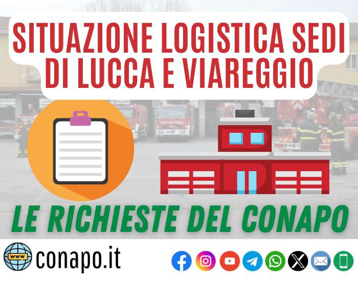 LUCCA – La risposta dell’amministrazione alla nota CONAPO sulla situazione logistica sede centrale del Comando VV.F. di Lucca. Richiesta di intervento per acquisizione sede di servizio e lavori di ristrutturazione. Situazione logistica distaccamento di Viareggio (LU). Richiesta di intervento risolutivo