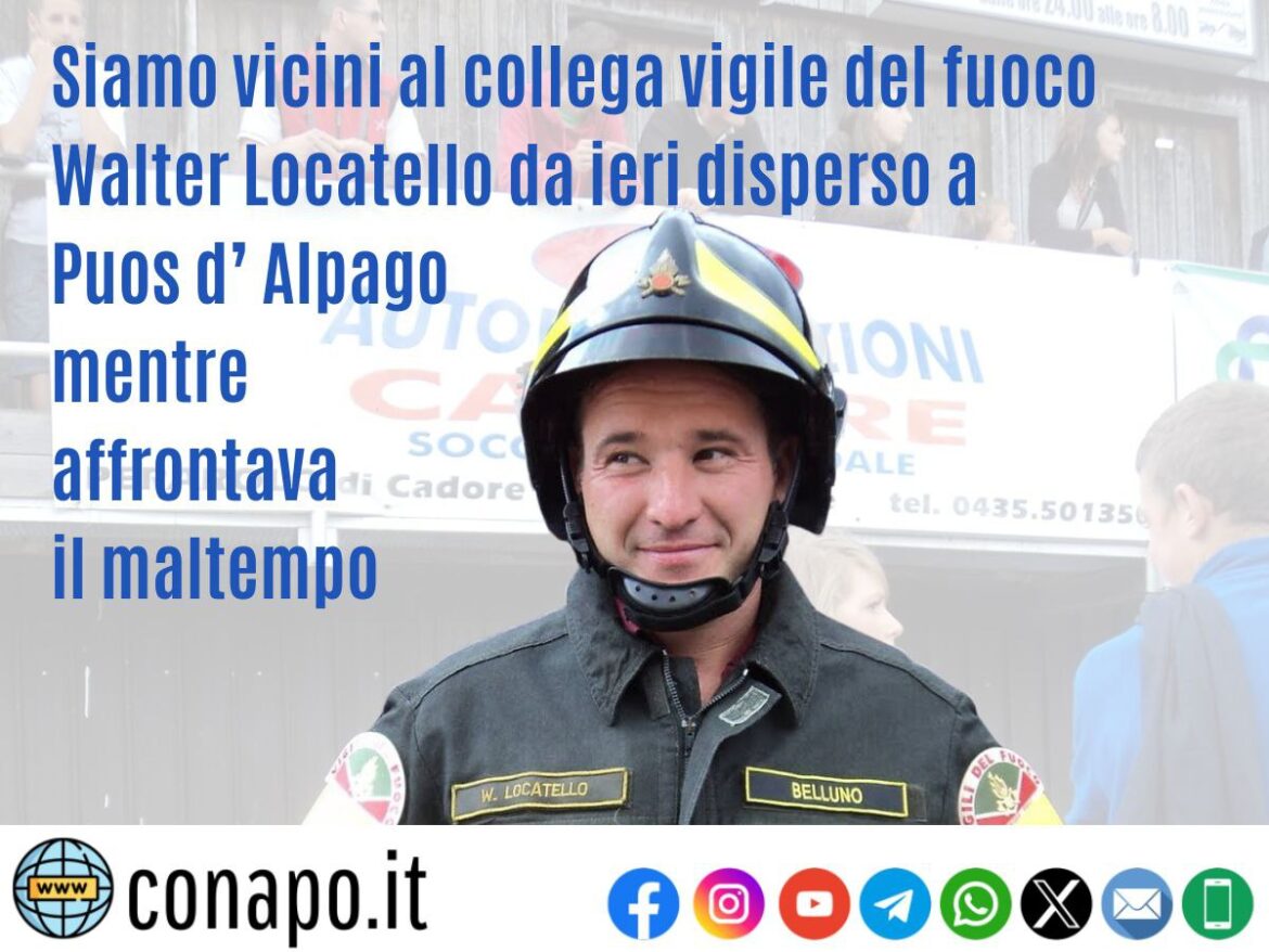 Roma, 3 Nov 2023 – “Siamo vicini al collega vigile del fuocoWalter Locatello da ieri disperso a Puos d’Alpago mentre affrontava il maltempo. Tutti i vigili del fuoco seguono con estrema attenzione le operazioni di ricerca. Siamo tutti in stato di apprensione e ma con sentimenti di speranza tenuta viva dal massimo sforzo che i vigili del fuoco impiegati nelle ricerche stanno mettendo”.