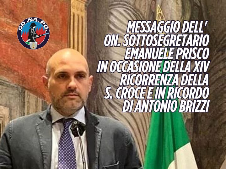 Messaggio dell’On. Sottosegretario Emanuele Prisco in occasione della XlV ricorrenza della S. Croce e in ricordo di Antonio Brizzi.