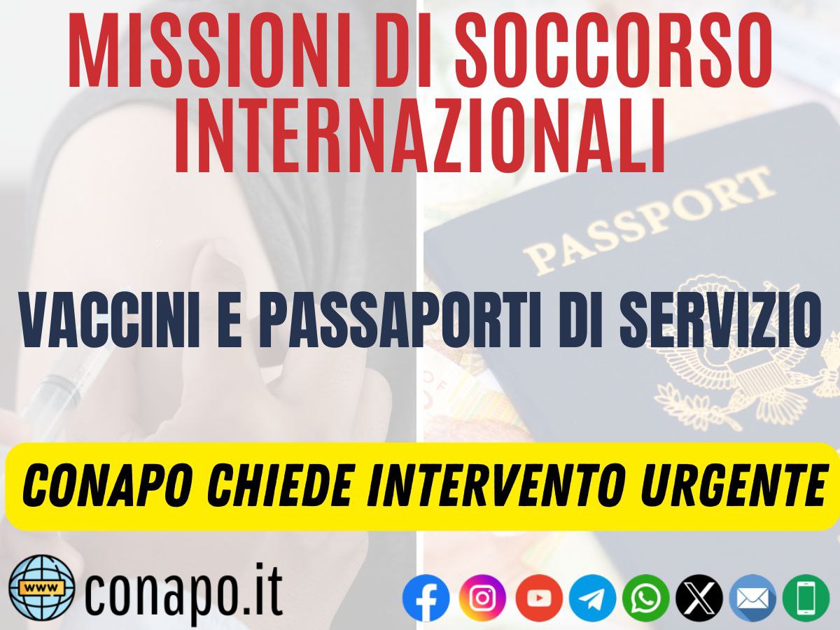 Per quanto sopra esposto, questa O.S. CONAPO chiede un tempestivo ed urgente intervento teso a garantire ai Vigili del Fuoco la somministrazione dei vaccini necessari allo svolgimento delle missioni di soccorso internazionali nelle dovute tempistiche ed in maniera egualitaria su tutto il territorio nazionale.
