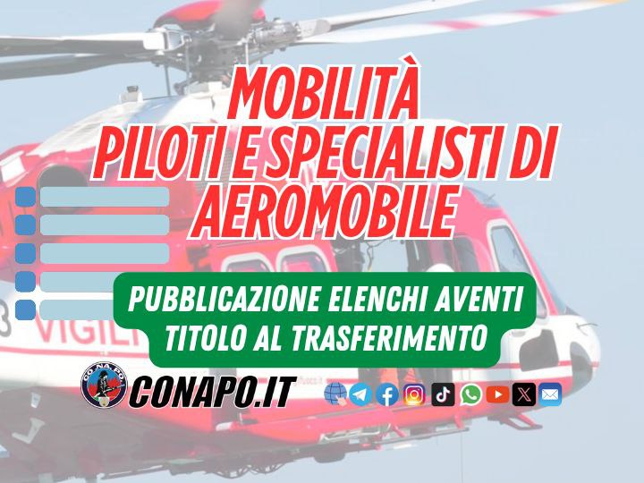 Home News Mobilità del personale appartenente ai ruoli dei Piloti di Aeromobile e Specialisti di Aeromobile nella qualifica dei Vigili del Fuoco. Elenchi degli aventi titolo al trasferimento.