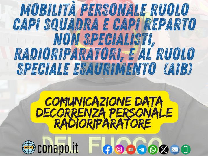 Mobilità del personale appartenente al ruolo dei Capi Squadra e dei Capi Reparto (circ. n. 60551 del 18/09/24). Comunicazione data trasferimento del personale radioriparatore.