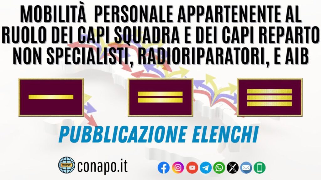 Mobilità del personale appartenente al ruolo dei Capi Squadra e dei Capi Reparto. Pubblicazione elenchi delle domande mobilità per verifica dati.