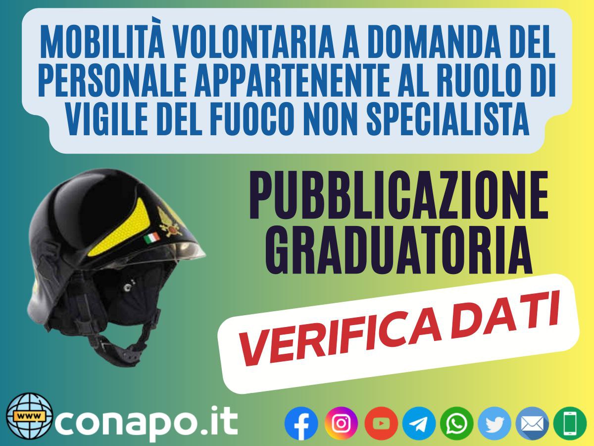 Mobilità del personale appartenente al ruolo di Vigile del Fuoco non specialista – Graduatoria di mobilità – Verifica dati. da Redazione_Conapo 9 Agosto 2023 9 Agosto 2023 3,9K Leggi la nota Scarica il PDF Stampa Condividi 0 FacebookTwitterPinterestWhatsappTelegramEmail Potrebbe piacerti anche Pubblicazione graduatorie finali – Concorsi pubblici a 7 posti per l’accesso alla qualifica di... 5 Dicembre 2025 Screening oncologico e cardiovascolare per il personale in servizio e in quiescenza. 4 Dicembre 2025 Il Governo incontra Forze Armate, Comparto Sicurezza e Soccorso Pubblico. 4 Dicembre 2025 Buona Santa Barbara. 4 Dicembre 2025 Avvio 103° corso Allievi Vigili del Fuoco 3 Dicembre 2025 Procedura di selezione per 18 posti di specialista di aeromobile vigile del fuoco per... 3 Dicembre 2025 post precedente Iniziativa di solidarietà in favore della famiglia del V.C. Antonio Ferrara. prossimo post Concorso pubblico a 300 posti nella qualifica di vigile del fuoco del C.N.VV.F. – Pubblicazione calendario visite mediche.