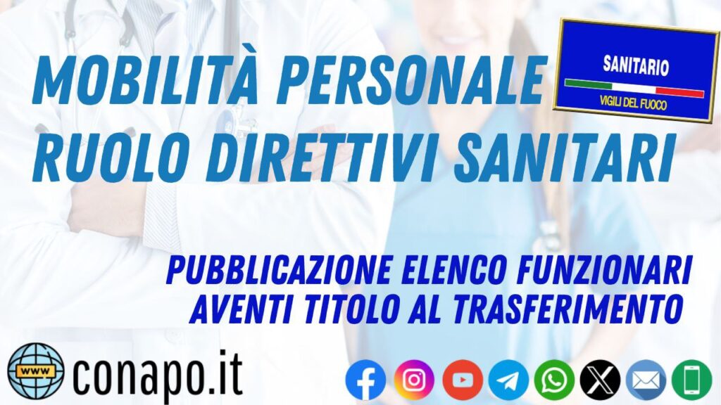 Mobilità del personale del Corpo Nazionale dei Vigili del Fuoco appartenente al ruolo dei Direttivi Sanitari del C.N.VV.F. (Circolare n. 23851 del 9 aprile 2024). Elenco degli aventi titolo al trasferimento.