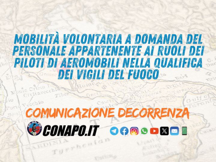 Mobilità volontaria a domanda del personale appartenente ai ruoli dei Piloti di Aeromobili nella qualifica dei Vigili del Fuoco. Comunicazione decorrenza.