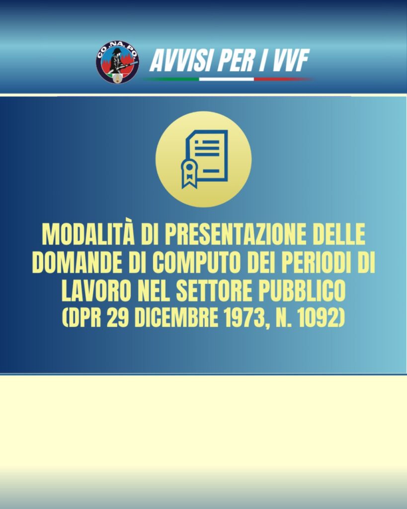 Modalità di presentazione delle domande di computo dei periodi di lavoro nel settore pubblico (d.P.R. 29 dicembre 1973, n. 1092). da Redazione_Conapo 3 Marzo 2026 3 Marzo 2026 90 Leggi la nota Scarica il PDF Stampa Condividi 0 FacebookTwitterPinterestWhatsappTelegramEmail Potrebbe piacerti anche Messaggio NOIPA 019/2026 – Self service rinuncia detassazione retribuzione accessoria. 1 Marzo 2026 Corso di formazione Ispettori aeronaviganti, Conapo chiede intervento urgente. 1 Marzo 2026 Decreto di modifica della composizione del Comitato Unico di Garanzia (CUG) per il Corpo... 27 Febbraio 2026 Ridefinizione degli incarichi di funzione ai dirigenti del CNVVF. 26 Febbraio 2026 Informativa relativa al conferimento di incarichi dirigenziali. 26 Febbraio 2026 Mobilità esclusione VVF con meno di 2 anni di servizio. Iniziativa legale GRATUITA per... 26 Febbraio 2026 post precedente CAGLIARI – Richiesta di chiarimenti in merito ai benefici riconosciuti al personale del CNVVF ai sensi della Legge 104/1992.