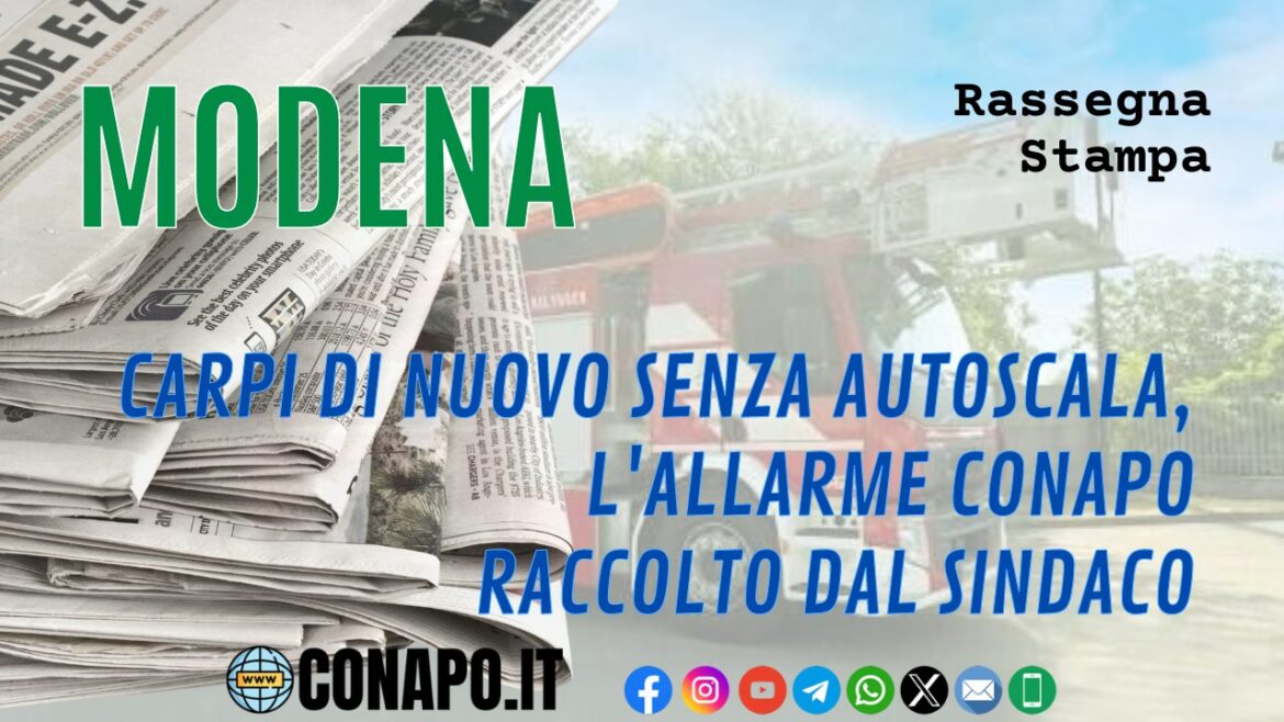 MODENA – Carpi di nuovo senza autoscala, l’allarme Conapo raccolto dal sindaco. da Redazione_Conapo 18 Luglio 2024 18 Luglio 2024 865 Leggi la nota Scarica il PDF Stampa Condividi 0 FacebookTwitterPinterestWhatsappTelegramEmail Potrebbe piacerti anche PRATO – Escrementi di topi e uccelli nella mensa dei vigili del fuoco: proclamato... 2 Dicembre 2025 PERUGIA – Richiesta di intitolazione della sede VV.F. di Perugia alla memoria del Vigile... 28 Novembre 2025 BELLUNO – Il Prefetto accoglie la richiesta CONAPO dopo la segnalazione in merito alla... 24 Novembre 2025 RIMINI – Urgente ripristino impianto di climatizzazione presso distaccamento di Cattolica. 23 Novembre 2025 REGGIO EMILIA – Mozione ordinaria per il Consiglio comunale, carenza organico dei Vigili del... 21 Novembre 2025 REGGIO EMILIA – i motivi dello stato di agitazione CONAPO (video). 21 Novembre 2025 post precedente SICILIA – Preoccupante carenza operatori SAF 2A nei Comandi della Sicilia. Richiesta svolgimento tempestivo corso regionale per Operatori SAF 2A. prossimo post Avvio procedura di assegnazione alle sedi di servizio. CS decorrenza 01/01/2023 e CS Specialisti decorrenza 01/01/2020