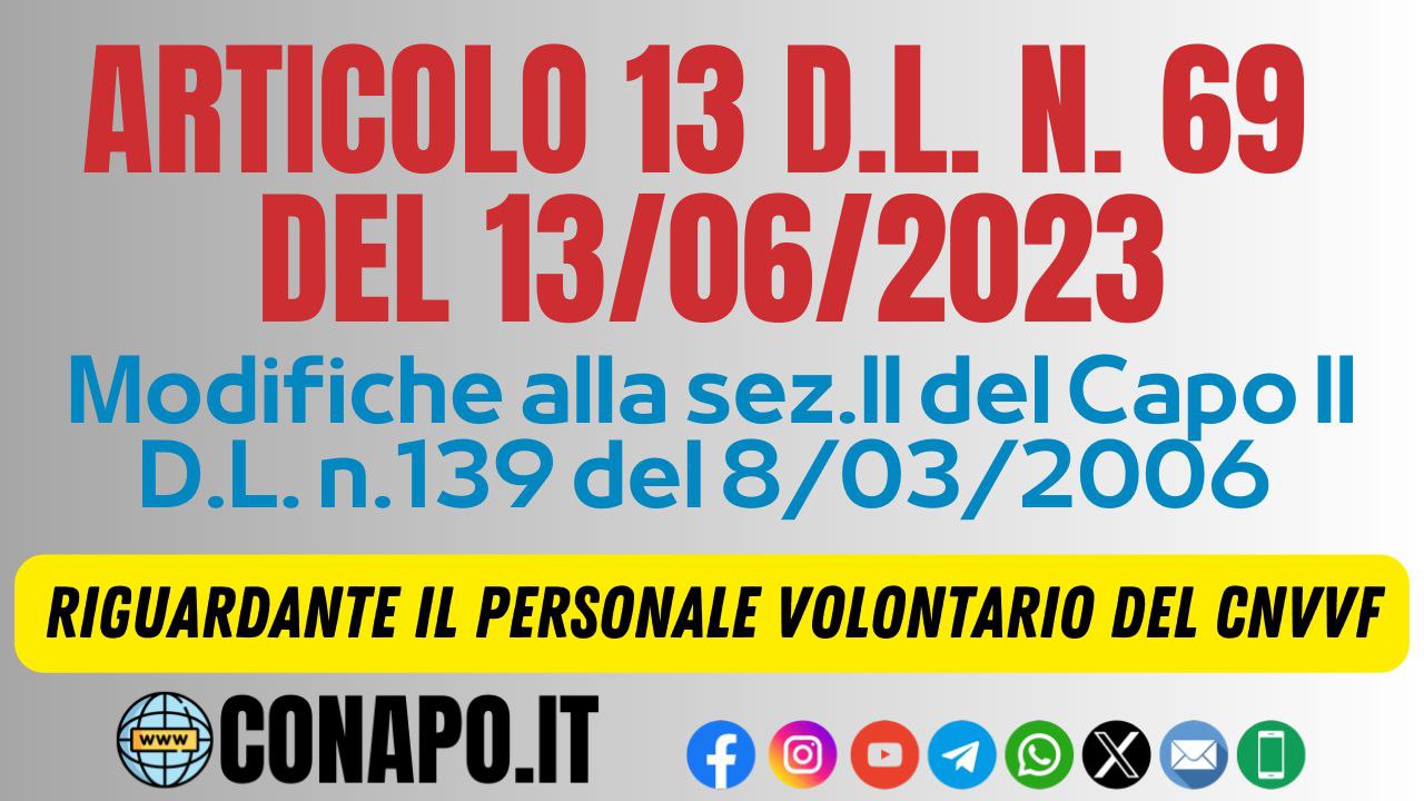 Modifiche al Decreto Legislativo 8 marzo 2006, n. 139, riguardanti il personale volontario del CNVVF