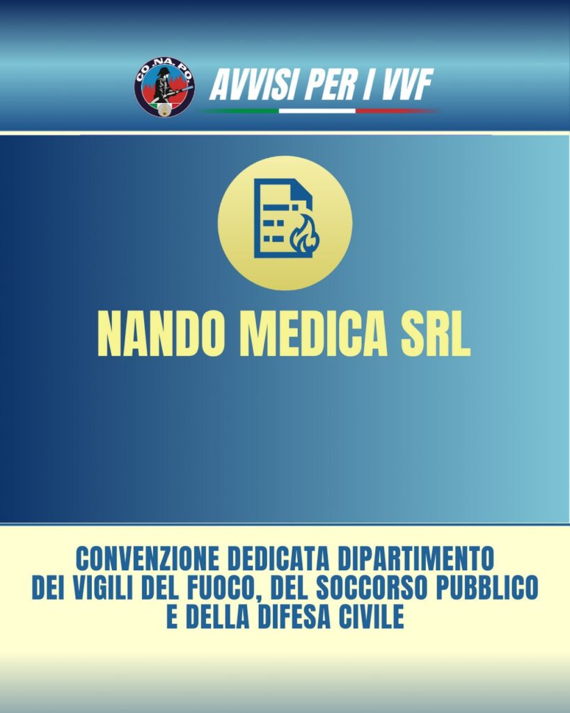 Nando Medica Srl – Convenzione dedicata Dipartimento dei Vigili del Fuoco, del Soccorso Pubblico e della Difesa Civile. da Redazione_Conapo 18 Marzo 2026 18 Marzo 2026 62 Leggi la nota Scarica il PDF Stampa Condividi 0 FacebookTwitterPinterestWhatsappTelegramEmail Potrebbe piacerti anche Rinnovo 2026 – Programma Trenitalia for Business – Welfare Plus. 18 Marzo 2026 Accordo Dipartimento dei Vigili del Fuoco, del Soccorso Pubblico e della Difesa Civile e... 18 Marzo 2026 Mobilità e trasferimenti temporanei leggi speciali: il CONAPO ottiene un accordo che premia l’anzianità. 18 Marzo 2026 Risposta a nota Conapo su partecipazione dei Vice Direttori operativi al giuramento del 101°... 18 Marzo 2026 Concorso a Capo Squadra decorrenza 2025, circolare scelta sede. 17 Marzo 2026 Ricognizione delle aspirazioni al trasferimento del personale appartenente al ruolo, ad esaurimento, dei Direttivi... 16 Marzo 2026 post precedente Accordo Dipartimento dei Vigili del Fuoco, del Soccorso Pubblico e della Difesa Civile e Vittoria Assicurazioni S.p.A. – Piattaforma Vittoria Digital. prossimo post Rinnovo 2026 – Programma Trenitalia for Business – Welfare Plus.