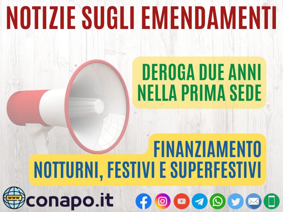 Home Bacheca Sindacale Notizie sugli emendamenti – Deroga all’obbligo dei due anni nella prima sede e Finanziamento notturni, festivi e superfestivi.