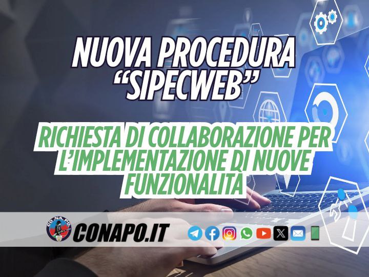 Nell’ambito del progetto di realizzazione della nuova procedura SIPEC Web, al fine di completarne lo sviluppo delle funzionalità attualmente disponibili in SIPEC e di integrare nuove soluzioni in linea con le esigenze manifestate dalle sedi territoriali, si intende avviare, in collaborazione con queste ultime, specifici gruppi di lavoro dedicati alla definizione delle relative specifiche funzionali.