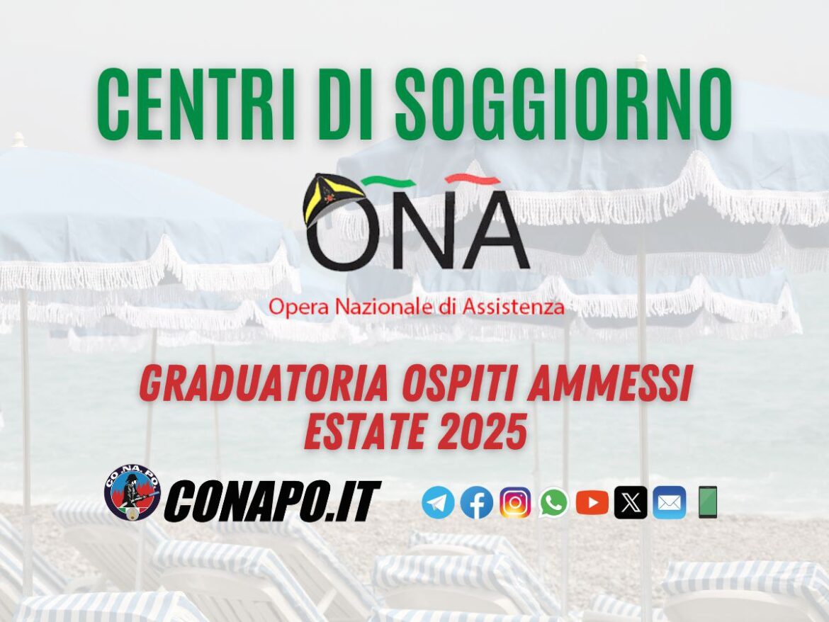 ONA – Centri di soggiorno, graduatoria ospiti ammessi estate 2025. da Redazione_Conapo 4 Giugno 2025 4 Giugno 2025 1,1K Pubblicazione delle graduatorie degli ospiti ammessi presso i Centri di soggiorno Leggi la nota Scarica il PDF Stampa Condividi 0 FacebookTwitterPinterestWhatsappTelegramEmail Potrebbe piacerti anche Pubblicazione graduatorie finali – Concorsi pubblici a 7 posti per l’accesso alla qualifica di... 5 Dicembre 2025 Screening oncologico e cardiovascolare per il personale in servizio e in quiescenza. 4 Dicembre 2025 Il Governo incontra Forze Armate, Comparto Sicurezza e Soccorso Pubblico. 4 Dicembre 2025 Buona Santa Barbara. 4 Dicembre 2025 Avvio 103° corso Allievi Vigili del Fuoco 3 Dicembre 2025 Procedura di selezione per 18 posti di specialista di aeromobile vigile del fuoco per... 3 Dicembre 2025 post precedente Avviso relativo al concorso pubblico, per esami, a 5 posti per l’accesso nella qualifica di Ispettore Sanitario del Corpo Nazionale dei Vigili del fuoco. prossimo post Richiesta comunicazione date decorrenza trasferimenti CS/CR e assegnazioni CS 2024 – SOLLECITO