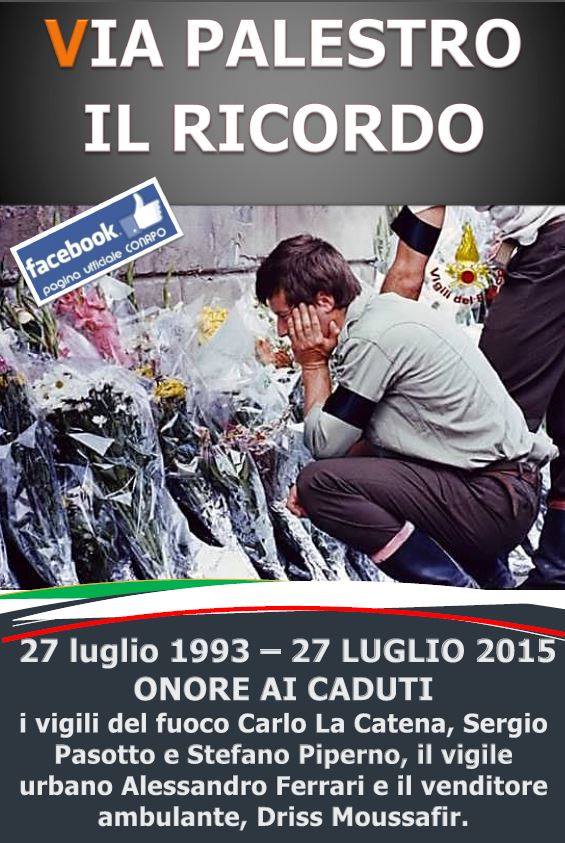 L’esplosione di una autobomba in via Palestro, presso la Galleria d’arte moderna e il Padiglione di arte contemporanea, provocò l’uccisione di cinque persone: i Vigili del Fuoco Carlo La Catena, Sergio Pasotto e Stefano Picerno, l’Agente di Polizia Municipale Alessandro Ferrari e Moussafir Driss, immigrato marocchino che dormiva su una panchina. Tale attentato viene inquadrato nella scia degli altri attentati del ’92-’93 che provocarono la morte di 21 persone (tra cui i giudici Falcone e Borsellino) e gravi danni al patrimonio artistico.