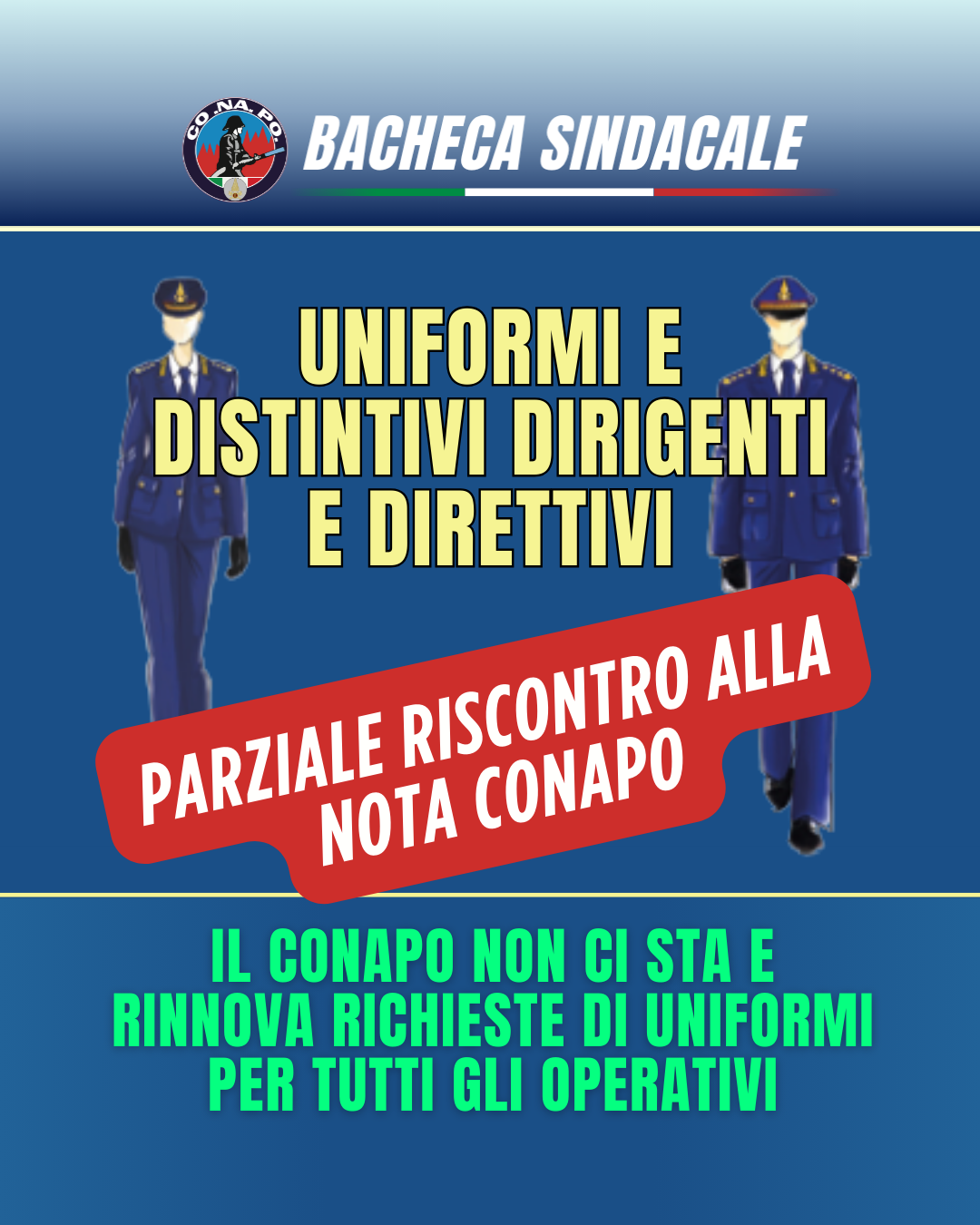 HomeBacheca SindacaleParziale riscontro alla nota Conapo sulla consegna della fornitura di uniformi ordinarie e relativi accessori per il personale dirigente e per i ruoli di rappresentanza