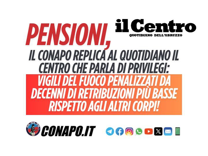 Home Bacheca Sindacale Pensioni, il Conapo replica al quotidiano il Centro che parla di privilegi: vigili del fuoco penalizzati da decenni di retribuzioni più basse rispetto agli altri Corpi!