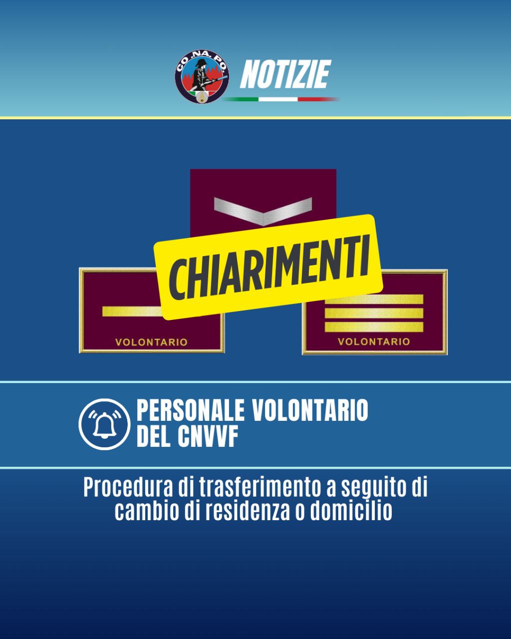 Personale volontario del Corpo Nazionale dei Vigili del Fuoco. Procedura di trasferimento a seguito di cambio di residenza o domicilio. da Redazione_Conapo 14 Marzo 2026 14 Marzo 2026 33 Leggi la nota Scarica il PDF Stampa Condividi 0 FacebookTwitterPinterestWhatsappTelegramEmail Potrebbe piacerti anche Esercitazioni nazionali e regionali di Colonna Mobile – Anno 2026. 14 Marzo 2026 Concorso interno per Ispettori aeronaviganti decorrenze dal 2019 al 2024, riscontro al sollecito avvio... 14 Marzo 2026 Assegnazione temporanea, ai sensi dell’art. 42 del DPR n. 64/2012, di personale appartenente al... 14 Marzo 2026 Assegnazione temporanea, ai sensi dell’art. 42 del DPR n. 64/2012, di personale appartenente al... 14 Marzo 2026 Mobilità del personale appartenente ai ruoli dei Piloti di Aeromobile, Specialisti di Aeromobile, Nautici... 14 Marzo 2026 Decreto di approvazione della graduatoria e dell’avviso delle modalità di rinuncia al corso per... 13 Marzo 2026 post precedente Decreto di approvazione della graduatoria e dell’avviso delle modalità di rinuncia al corso per la copertura di 1031 posti da Capo Squadra. prossimo post Mobilità del personale appartenente ai ruoli dei Piloti di Aeromobile, Specialisti di Aeromobile, Nautici di Coperta, Nautici di Macchina nella qualifica dei Vigili del Fuoco. Comunicazione decorrenza trasferimento.