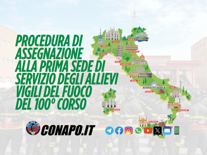 Procedura di assegnazione alla prima sede di servizio degli Allievi Vigili del Fuoco in prova appartenenti al 100° corso di formazione teorico-pratico