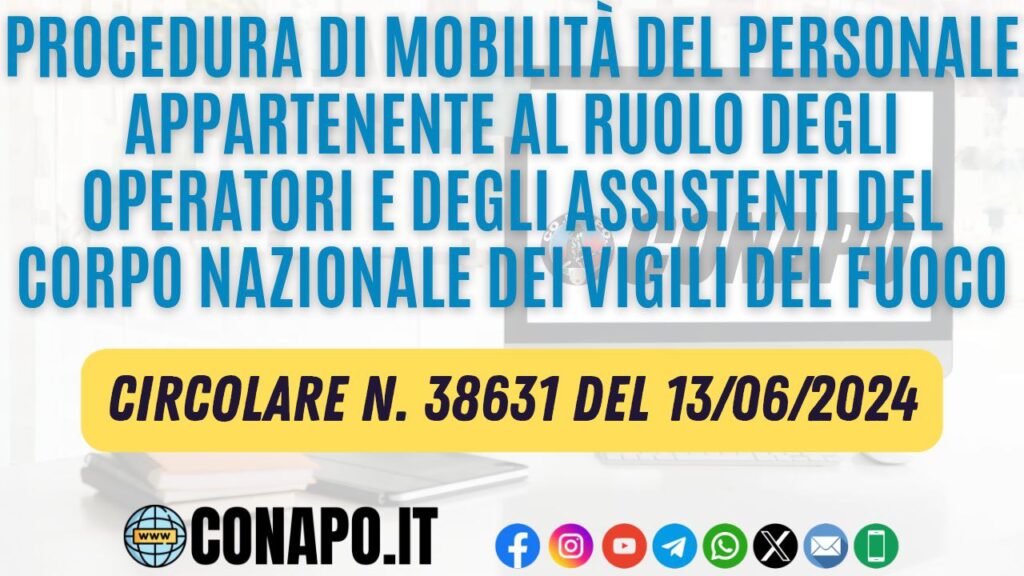 Procedura di mobilità del personale appartenente al ruolo degli Operatori e degli Assistenti del Corpo nazionale dei Vigili del Fuoco. (Circolare n. 38631 del 13/06/2024)