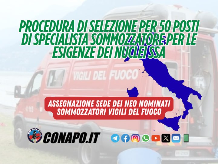 Procedura di selezione per 50 posti di specialista sommozzatore per le esigenze dei Nuclei di soccorso subacqueo ed acquatico territoriali(SSA) – Assegnazione sede dei neo nominati sommozzatori vigili del fuoco.