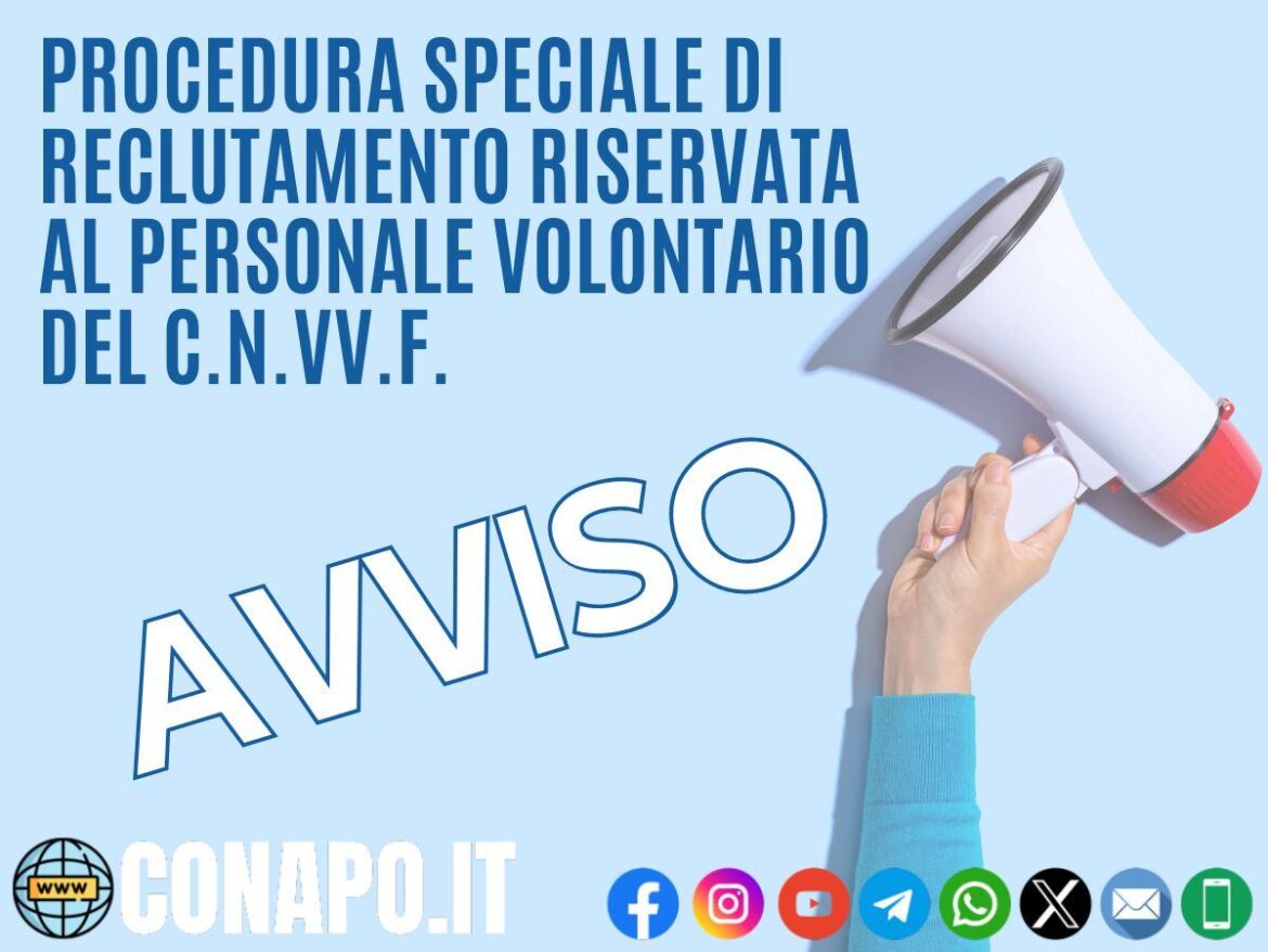 Procedura speciale di reclutamento riservata al personale volontario del C.N.VV.F., per la copertura di posti, nella qualifica di vigile del fuoco nel Corpo nazionale dei vigili del fuoco. Avviso del 27 settembre 2023.