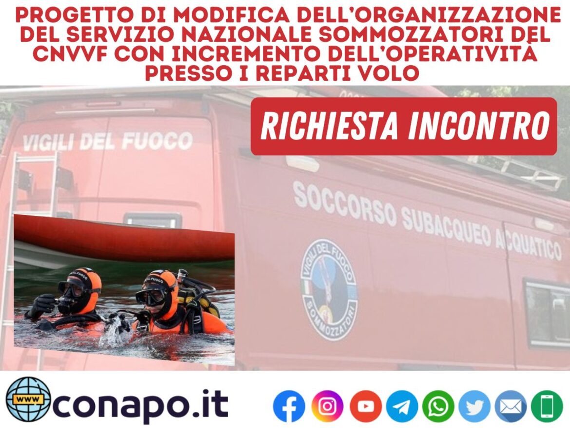 Home Bacheca Sindacale “Progetto di modifica dell’organizzazione del Servizio Nazionale Sommozzatori del Corpo Nazionale dei Vigili del Fuoco con incremento dell’operatività presso i reparti volo”. Richiesta incontro.