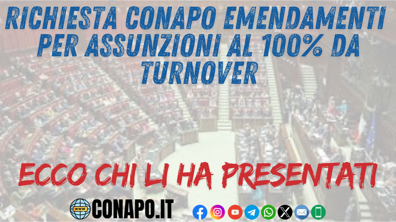 Alleghiamo gli emendamenti presentati dai vari gruppi parlamentari presso la V commissione della Camera dei Deputati, che hanno recepito le richieste Conapo, a cui vanno i nostri ringraziamenti, nell’attesa della votazione.