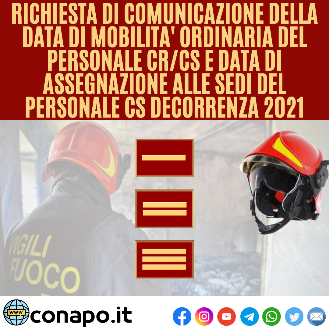 Oggetto: Richiesta di comunicazione della data di mobilità ordinaria del personale CR/CS e di assegnazione alle sedi del personale CS decorrenza 2021.