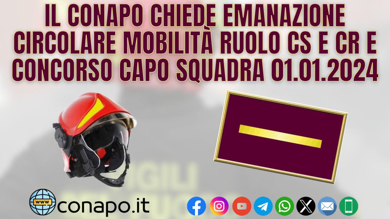 Oggetto: Richiesta urgente emanazione circolare di Mobilità ruolo Capi Squadra e Capi Reparto al fine di individuare i posti per il concorso a Capo Squadra, decorrenza 01.01.2024.