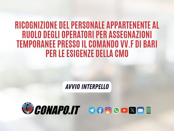 Ricognizione del personale appartenente al ruolo degli Operatori per assegnazioni temporanee presso il Comando VV.F di Bari per le esigenze della CMO.