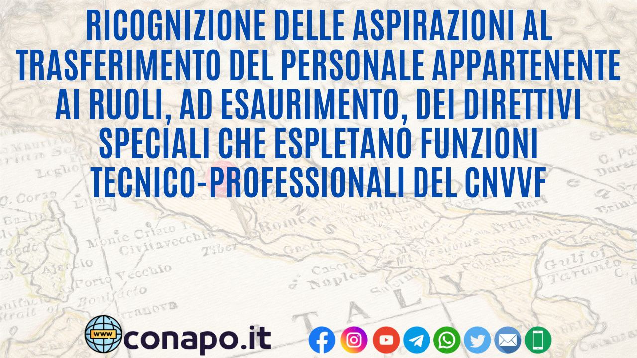Ricognizione delle aspirazioni al trasferimento del personale appartenente ai ruoli dei Direttivi Speciali che espletano funzioni tecnico-professionali del CNVVF.