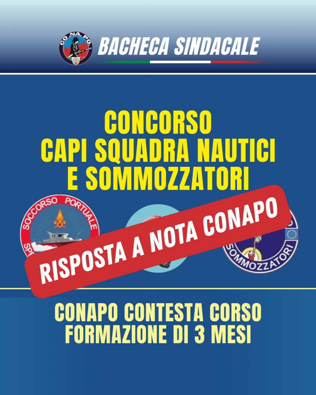 Riduzione a 5 settimane corso CS nautici e sommozzatori, il Dipartimento ha risposto al Conapo. da Redazione_Conapo 14 Aprile 2026 14 Aprile 2026 116 Riscontro nota dell’O.S. CONAPO del 2 aprile 2026 Leggi la nota Scarica il PDF Stampa Condividi 0 FacebookTwitterPinterestWhatsappTelegramEmail Potrebbe piacerti anche Informativa relativa alla conferma di incarichi dirigenziali a Dirigenti Generali del Corpo Nazionale dei... 14 Aprile 2026 Riunione su mobilità personale ruolo Ispettori informatici e rivisitazione pianta organica. 14 Aprile 2026 Riunione su ridefinizione degli incarichi di funzione ai dirigenti del CNVVF. 14 Aprile 2026 Ricognizione delle aspirazioni al trasferimento del personale appartenente al ruolo dei Direttivi Sanitari. 14 Aprile 2026 Concorso pubblico a 52 posti di ispettore logistico gestionale – Avviso visite mediche. 14 Aprile 2026 Concorso pubblico a 33 posti di vice direttore sanitario – Avviso visite mediche. 14 Aprile 2026 post precedente Riunione su mobilità personale ruolo Ispettori informatici e rivisitazione pianta organica. prossimo post Informativa relativa alla conferma di incarichi dirigenziali a Dirigenti Generali del Corpo Nazionale dei Vigili del Fuoco.