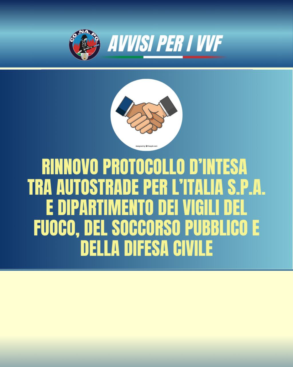 Rinnovo Protocollo d’intesa tra Autostrade per l’Italia S.p.A. e Dipartimento dei Vigili del Fuoco, del Soccorso Pubblico e della Difesa Civile.