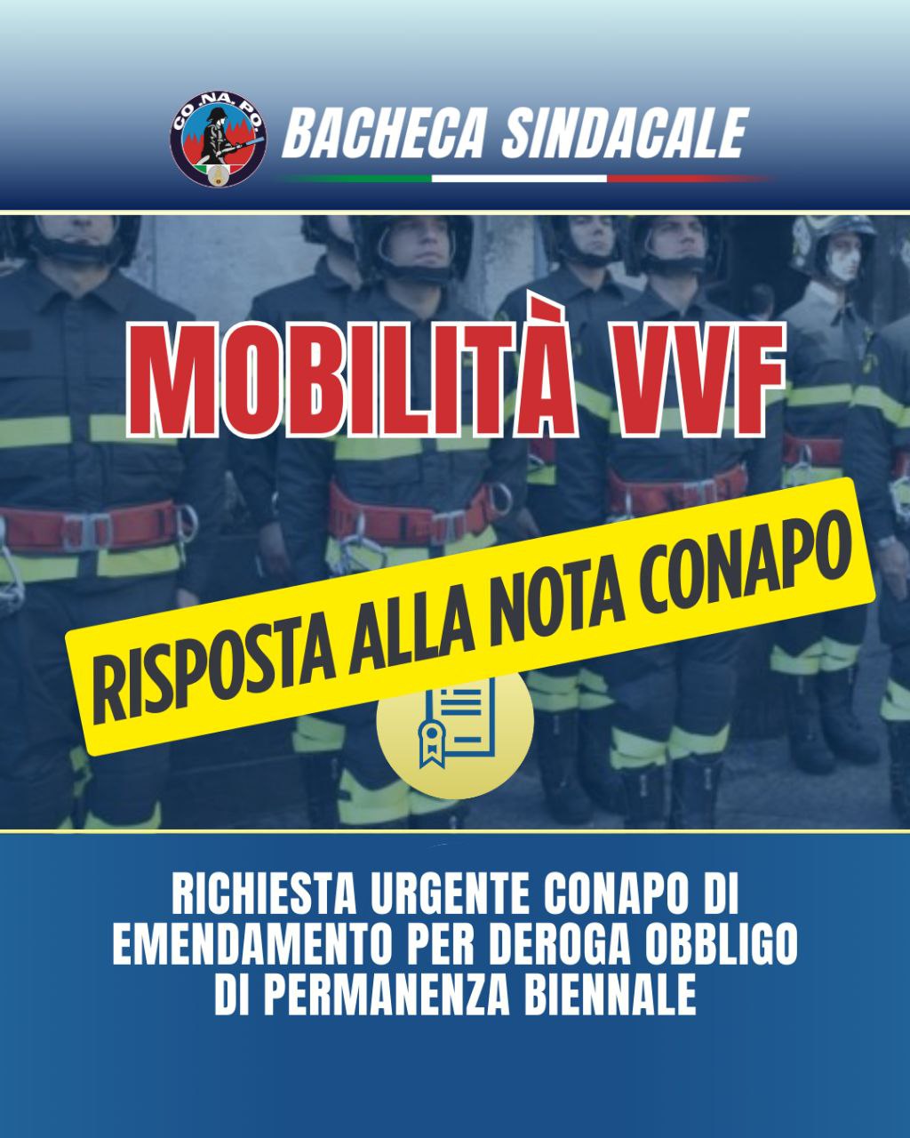 Risposta a nota Conapo su vincolo 2 anni prima sede per coloro che hanno usufruito della deroga Giubileo. da Redazione_Conapo 24 Febbraio 2026 24 Febbraio 2026 233 Risposta a nota Conapo Leggi la nota Scarica il PDF Stampa Condividi 0 FacebookTwitterPinterestWhatsappTelegramEmail Potrebbe piacerti anche Ricognizione disponibilità all’assegnazione presso il C.O.N. per la postazione VVF del Centro Operativo Aereo... 24 Febbraio 2026 Aggiornamento del progetto STOP (Schede Tecniche Opere Provvisionali). 24 Febbraio 2026 Riscontro alla nota Conapo su carenza uniformi e DPI. 23 Febbraio 2026 Aggiornamento SIPEC versione 7.3.2. 23 Febbraio 2026 Assegnazione temporanea di personale appartenente al ruolo dei Vigili del Fuoco e dei Capi... 23 Febbraio 2026 Assegnazione temporanea di personale appartenente al ruolo dei Capi Squadra e dei Capi Reparto... 23 Febbraio 2026 post precedente Riscontro alla nota Conapo su carenza uniformi e DPI. prossimo post SASSARI – Segnalazione anomalia nominativi componenti commissioni d’esame D.lgs. 81/08.