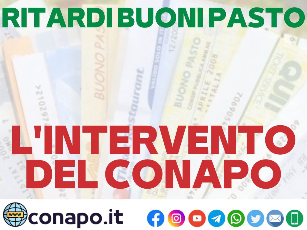 Ciò premesso, a sostegno delle vertenze in atto in Sicilia e solidarizzando con tutto il personale (di tutta Italia) che è in attesa di vedersi erogati i buoni pasto arretrati, il CONAPO chiede di chiarire i motivi dei ritardi dell’erogazione dei buoni pasto in tutte le regioni interessate e soprattutto di porre in essere tutte le iniziative volte a risolvere definitivamente la questione e chiede a tal fine di convocare un apposito incontro sull’argomento.