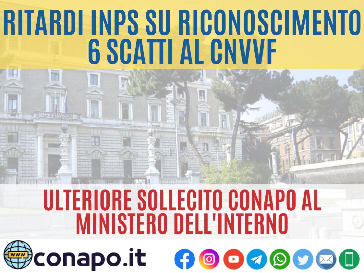 Oggetto: Mancata applicazione da parte dell’INPS dell’art. 1, commi da 98 a 100 della legge 234/2021 (armonizzazione trattamenti di quiescenza dei Vigili del Fuoco con quelli degli altri Corpi dello Stato – cd sei aumenti periodici). Ulteriore sollecito e richiesta di urgente intervento presso l’INPS.